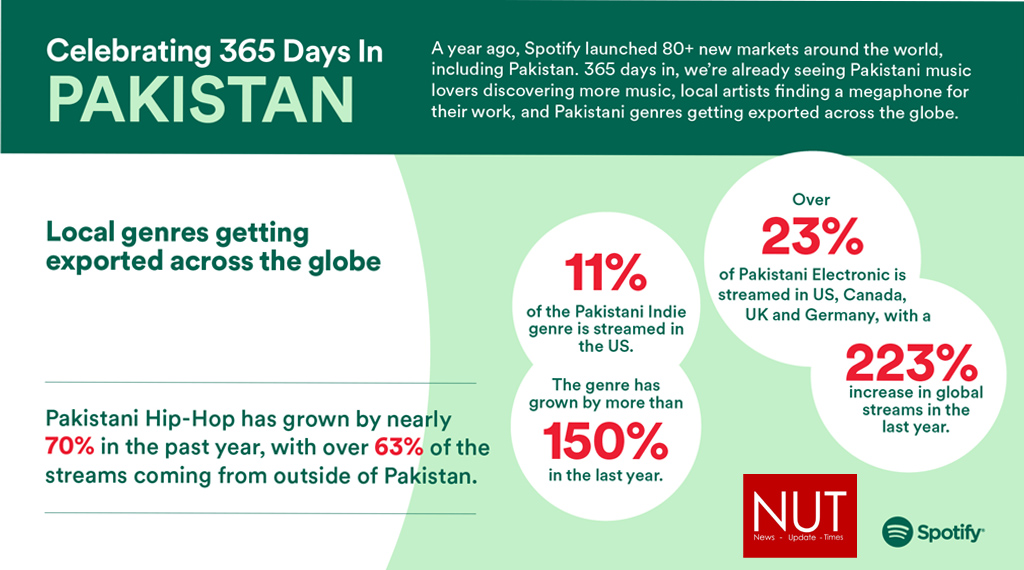 Lahore (Muhammad Yasir) Almost a year ago, Spotify – the world’s most popular streaming platform, entered the Pakistani market with a commitment to help local artists reach new fans and build careers, both at home and abroad, through its tools and features that enable artist discovery. 365 days later, Spotify is celebrating its first anniversary by unveiling how Pakistani music is being discovered and enjoyed around the world.